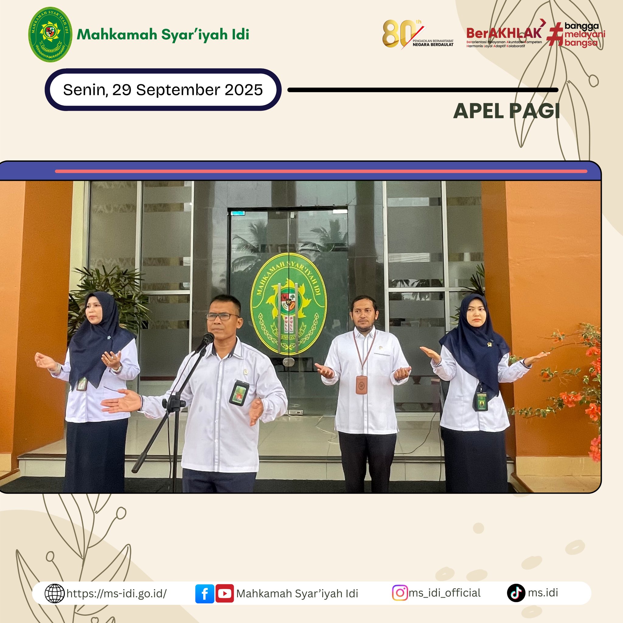 Senin, 29 September 2025 Mahkamah Syar’iyah Idi , melaksanakan Apel Pagi di Halaman Mahkamah Syar’iyah Idi,