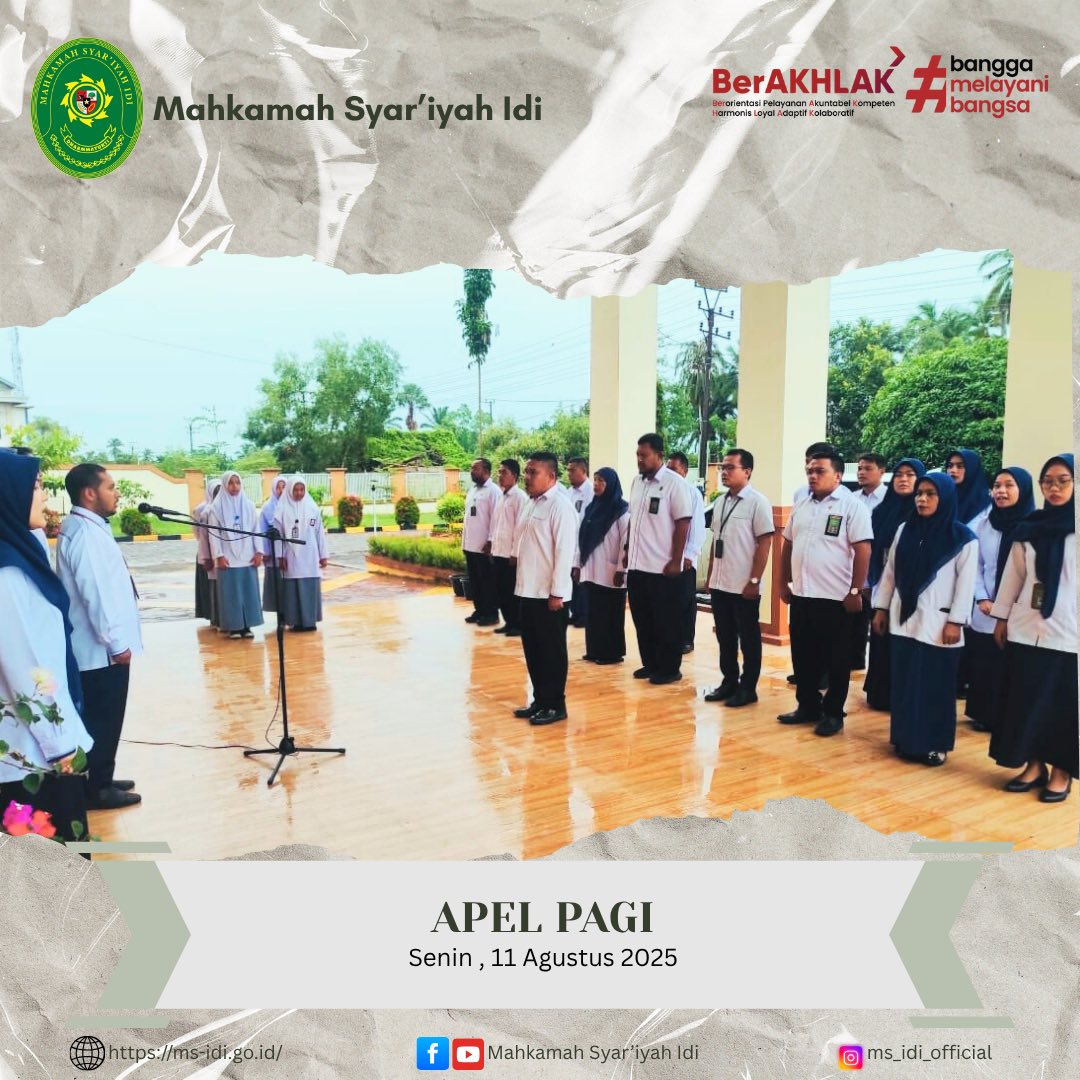 Senin, 11 Agustus 2025 Mahkamah Syar’iyah Idi, melaksanakan Apel Pagi di Halaman Mahkamah Syar’iyah Idi,
