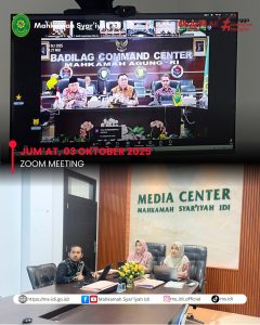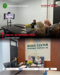 Jum’at, 03 Oktober 2025, Ketua Mahkamah Syar’iyah Idi, Ibu Wafa’, S.H.I.,M.H. beserta Bapak dan Ibu Hakim melaksanakan kegiatan Bimbingan Teknis Peningkatan Kompetensi Mediator di Lingkungan Peradilan Agama secara daring melalui Zoom Meeting. Kegiatan ini bertujuan meningkatkan kemampuan dan keterampilan mediator dalam menjalankan tugasnya secara profesional dan efektif. Melalui bimbingan teknis ini, diharapkan mediator di lingkungan Mahkamah Syar’iyah Idi dapat lebih optimal dalam menyelesaikan perkara melalui mediasi dengan pendekatan yang tepat dan sesuai prosedur peradilan agama.