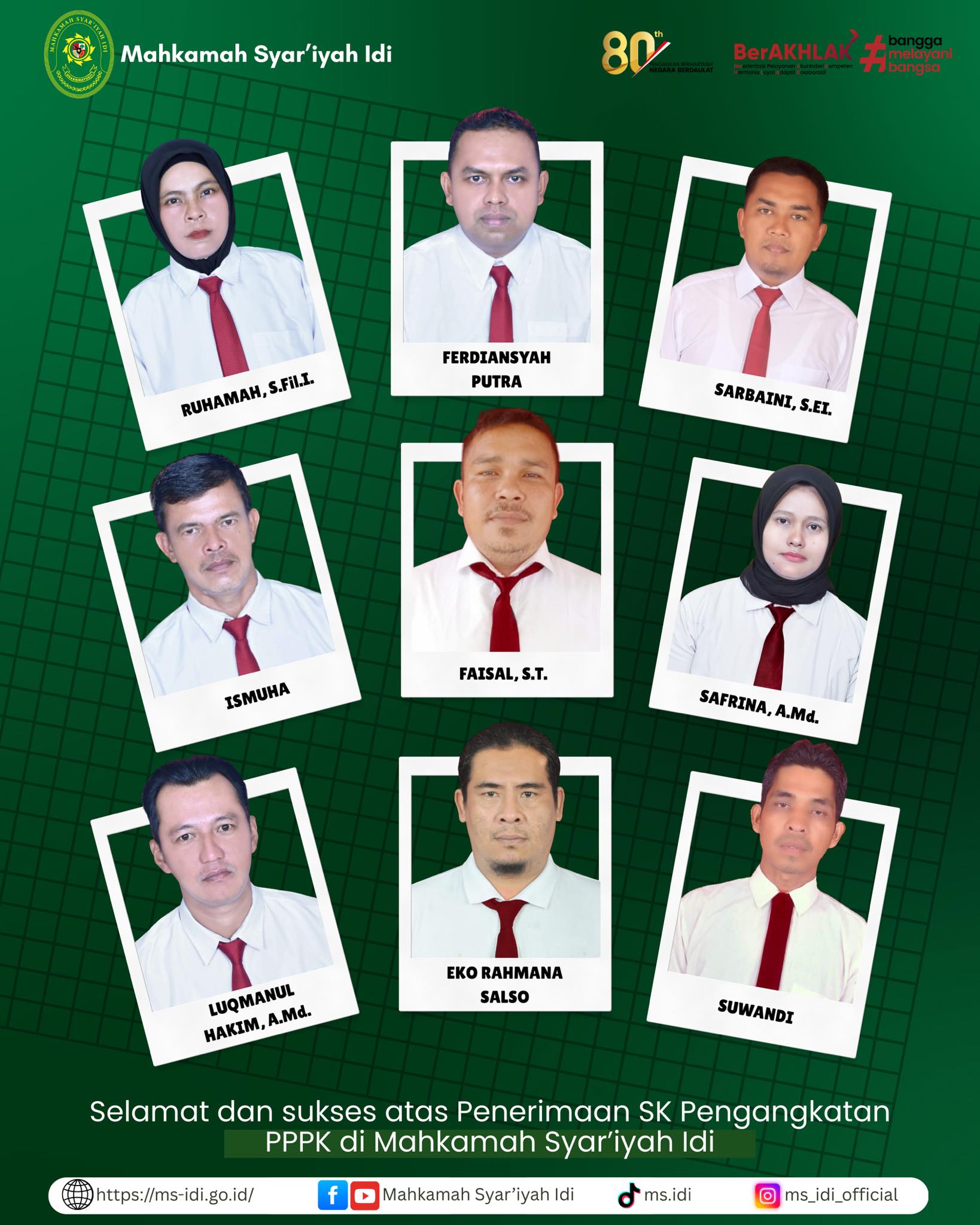Idi, 1 September 2025, Keluarga Besar Mahkamah Syar’iyah Idi mengucapkan Selamat dan Sukses atas Pengambilan Sumpah/Janji Pegawai Pemerintah dengan Perjanjian Kerja (PPPK).